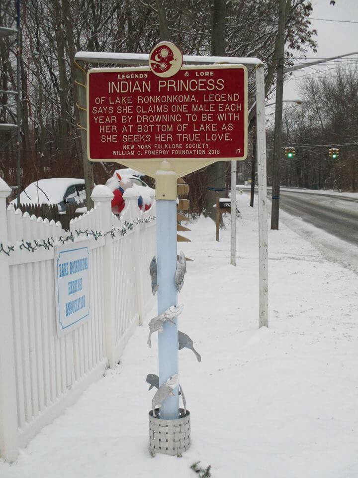 This legend describes a Native American princess, known as the Indian Princess of Lake Ronkonkoma, who claims the life of one male each year by drowning them in the lake. She did this in search of her true love.