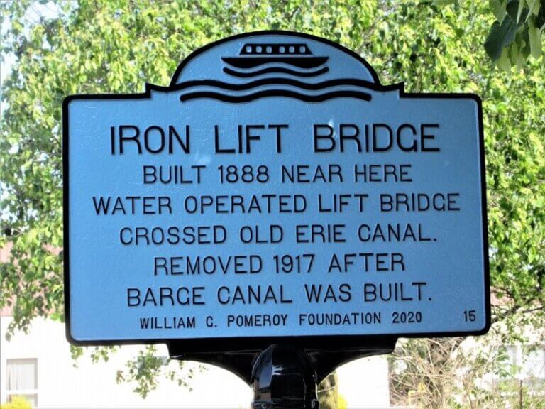 Taking nearly a decade to build, the Erie Canal was an impressive feat of modern engineering. Spanning 363 miles, this artificial waterway featured locks, aqueducts, and bridges which traversed the diverse geography of New York and connected the East Coast to the Great Lakes. In the village of Clyde, NY an iron lift bridge once stood over the old Erie Canal. Built in 1888, this bridge was erected by the Hilton Bridge Construction Co. out of Albany and cost nearly to $7,000 to build, according a February 19, 1890 New York State Assembly Report. With its sophisticated and complex hydraulics, the bridge could be lifted over the water in order to allow large vessels traveling on the Erie Canal to pass unencumbered. This bridge stood for nearly 30 years until it was removed in 1917 to make way for a barge canal.