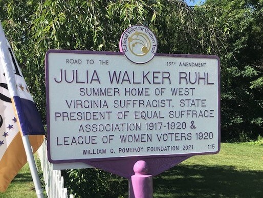 Ruhl’s summer home was located in Mountain Lake Park, Maryland. The August 2, 1916 edition of the Clarksburg Daily Telegram published a message Ruhl sent from her Mountain Lake Park home to the paper in response to a recent suffrage edition of the paper. Ruhl encouraged West Virginia to support votes for women: