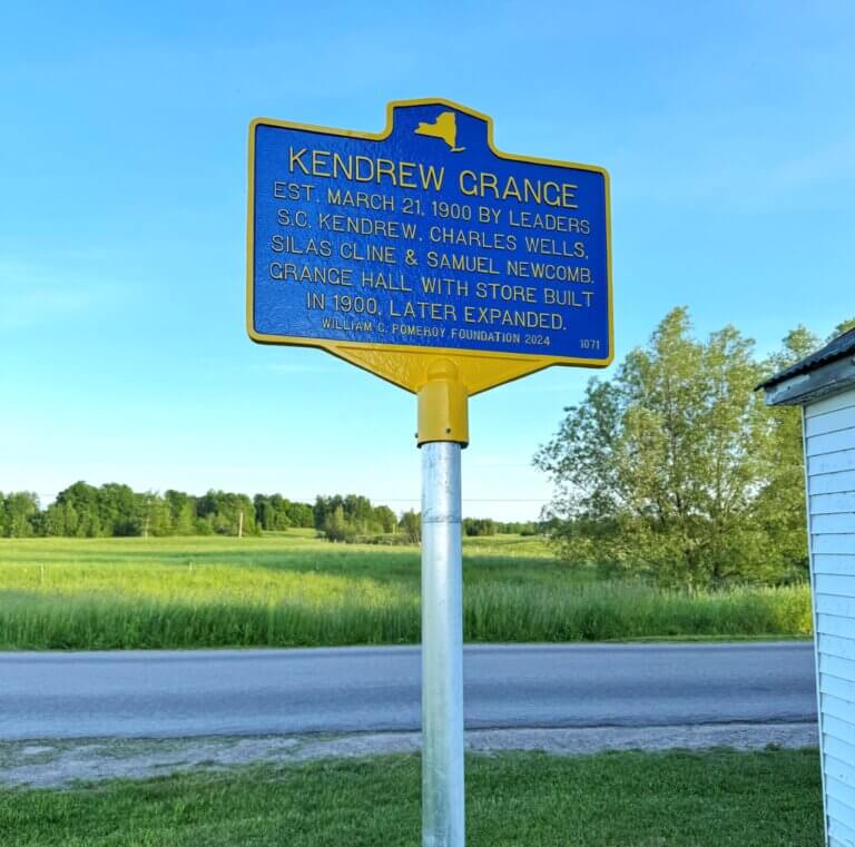 Kendrew Grange of St. Lawrence County, New York, was incorporated on March 21, 1900. According to the April 3, 1900 issue of the Norwood News, local leaders in the movement to establish the Kendrew Grange included S.C. Kendrew, Charles Wells, Silas Cline, and Samuel Newcomb. In 1900, a grange hall with a store was built and completed by October of that year. The lower floor of the two-story building was used for the store with the upper floor used as the hall.