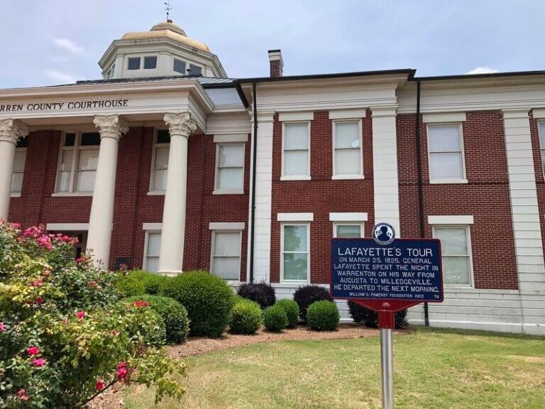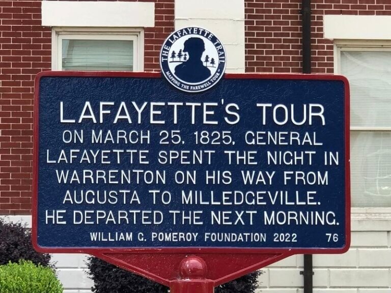 On March 25, 1825, General Lafayette overnighted in Warrenton, GA while on his way to Milledgeville. The short stop was briefly mentioned in the March 30, 1825 edition of the Charleston Courier: