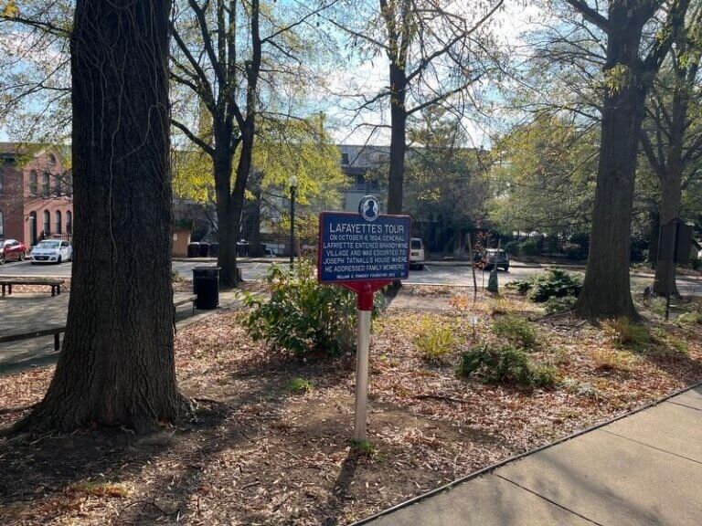 On October 6, 1824, General Lafayette arrived at Brandywine Village in Wilmington, Delaware, where he was welcomed and escorted to Joseph Tatnall’s house.