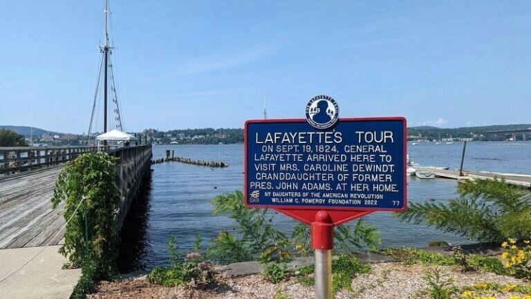 Traveling along the Hudson River by steamboat, General Lafayette arrived at Fishkill Landing (now Beacon, New York) on September 19, 1824 aboard the James Kent. Lafayette was welcomed at the home of Caroline De Windt, the granddaughter of former U.S. President John Adams. During his brief stop, he met with veterans and citizens assembled there. He was escorted back to the James Kent later that night and departed for New York City.