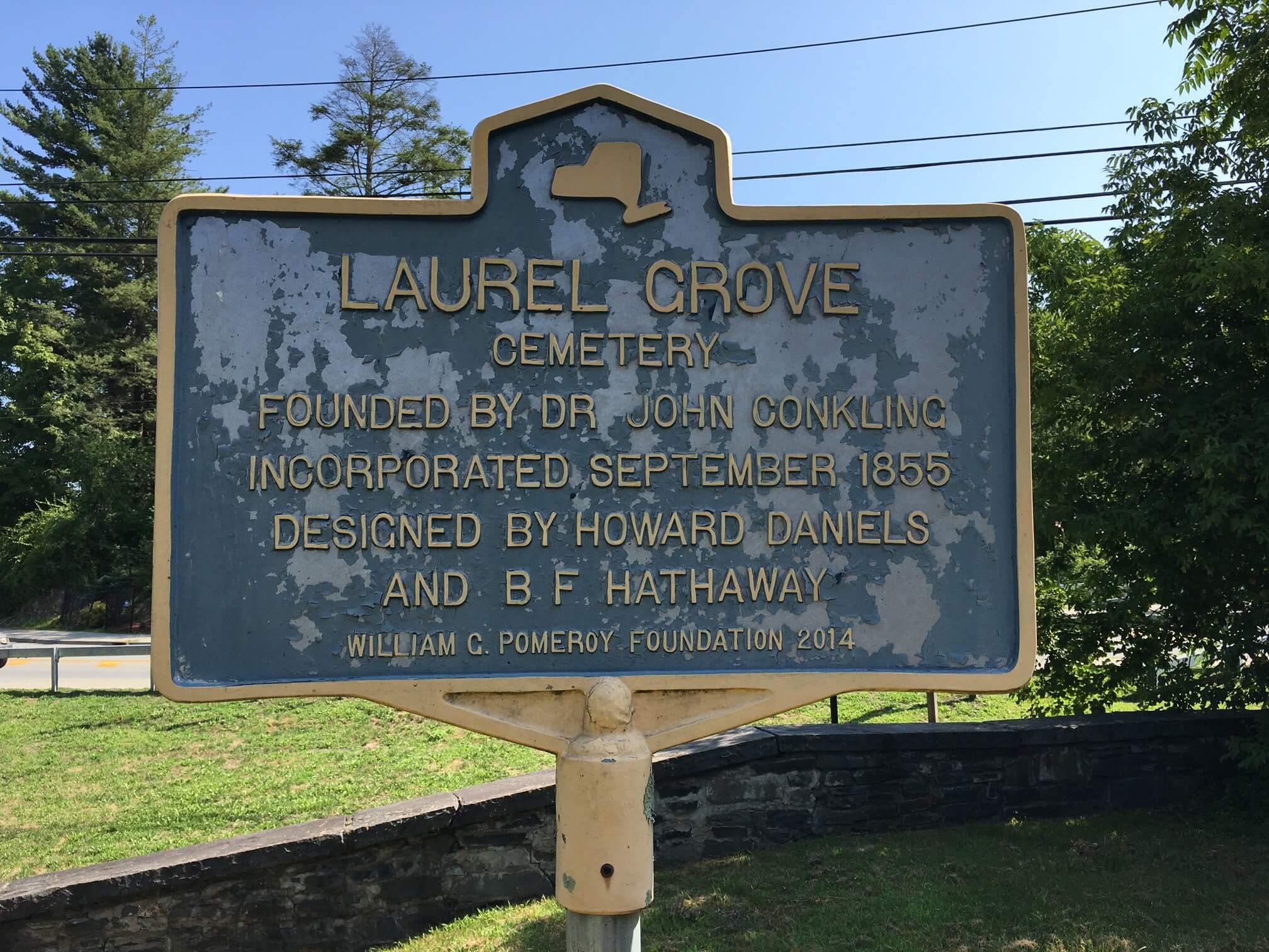 Founded by Dr. John Conkling, Laurel Grove Cemetery was incorporated in September of 1855. The grounds were designed by Howard Daniels and B.F. Hathaway.