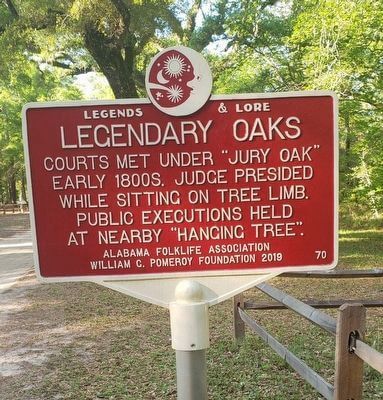 The community of Blakeley did not build a courthouse until after 1830. Prior to this, it was believed that judges held court sessions under the branches of the many large and ancient oak trees that were extremely prominent in the town. One tree in particular was nicknamed “Jury Oaks.” This tree was said to have been located in the center of Blakeley and that the judge would climb onto a limb in the tree and conduct proceedings. In conjunction with “Jury Oaks,” there was also the nearby, “Hanging Tree.” According to legend, if a death sentence was announced then the prisoner would have been hanged from this huge oak tree. Due to the abundance of oak trees, the people of Blakeley never built gallows.