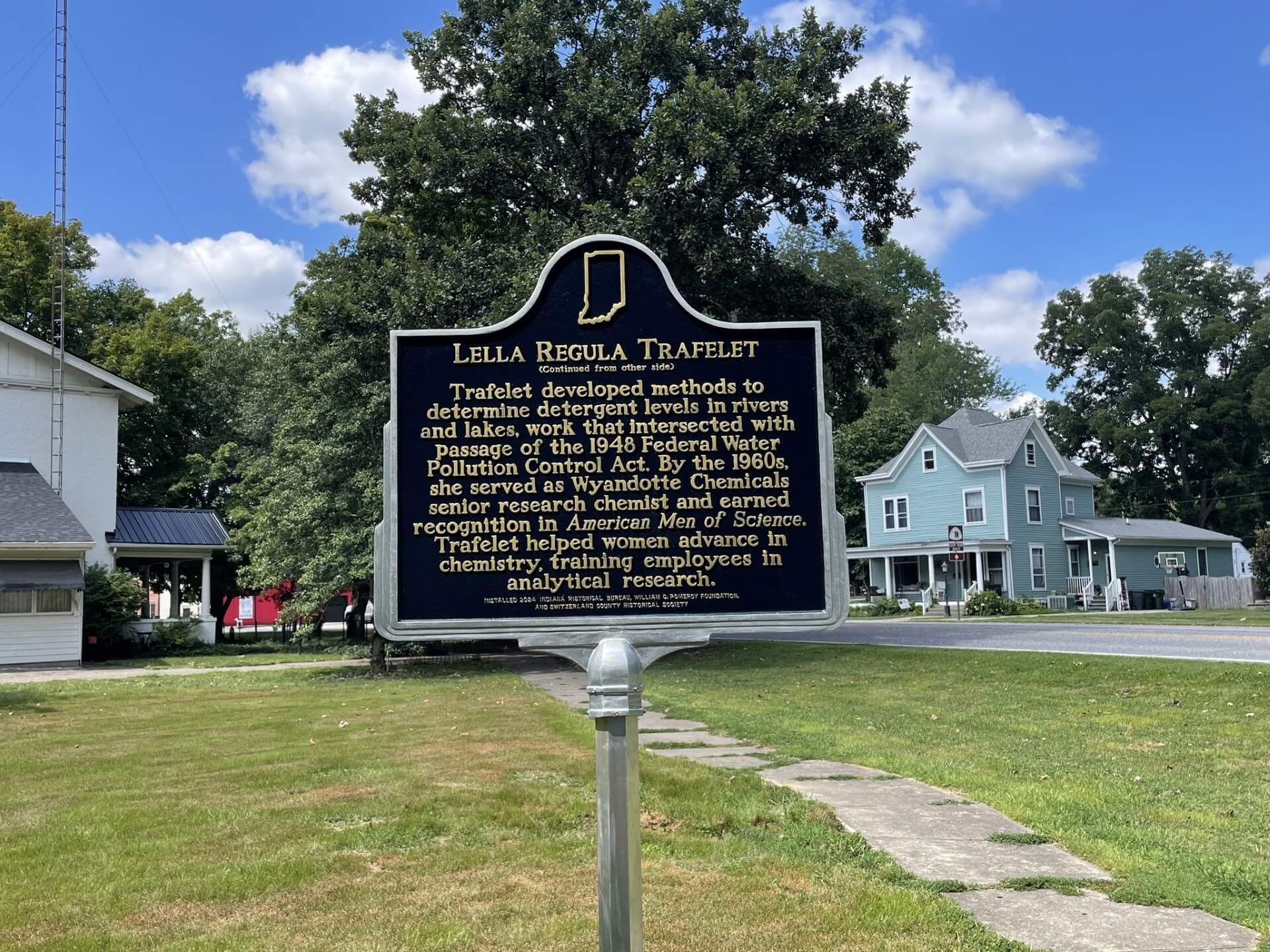 Groundbreaking research chemist Lella Trafelet was born near Vevay. In 1938, she earned her M.A. in Chemistry at Indiana University before overseeing laboratories at the U.S. Rubber Company, Naugatuck Chemical Division in Connecticut. In the 1940s, Trafelet began a decades long-career at Michigan’s Wyandotte Chemicals Corporation, where she overcame gender barriers.