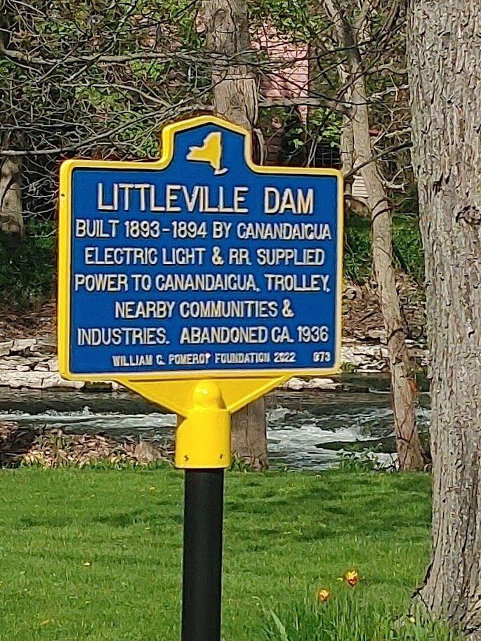 The Littleville Dam once covered over a hundred fifty acres and supplied multiple communities and industries with electricity, allowing for rapid growth within the region. Constructed and operated by the Canandaigua Electric Light and Railroad Company until the early 1900s, the Littleville Dam and Power Plant spurred the development of electric street cars—or trollies—within nearby Canandaigua; another undertaking carried out by Canandaigua Electric.