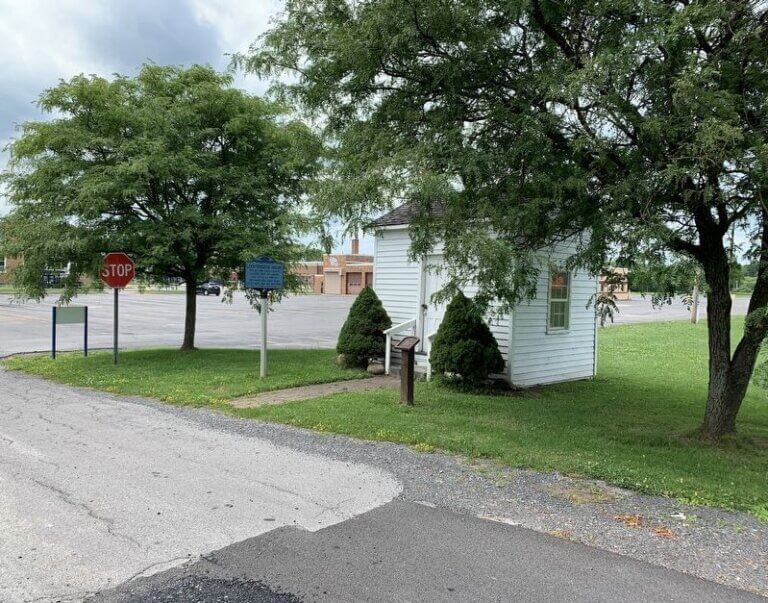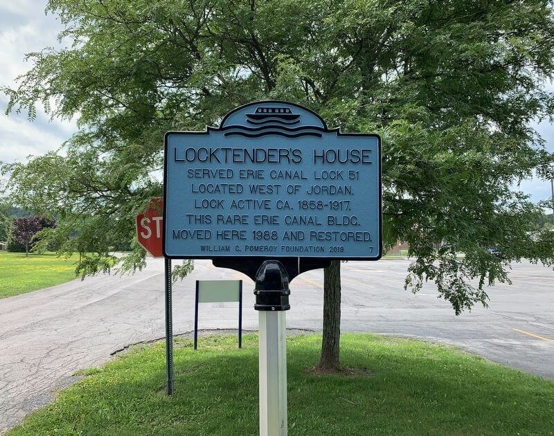Some consider the Erie Canal one of the most significant feats of modern engineering by how it revolutionized the transportation of goods and people from east to west. Crisscrossing the diverse geography of New York State, this artificial waterway featured bridges, locks, and aqueducts to allow boats to move easily along the canal. Similar to an elevator, locks moved boats from a higher water level to a lower water level using watertight gates. Locktenders were stationed at these sites and assisted with the opening and closing of the gates. Lock 51, located west of Jordan, operated from circa 1858-1917. A small locktender’s house was located here as well. This structure is where the individual who worked Lock 51 lived and worked while the canals were in operation. When the canal closed, the locktender’s house was abandoned and fell into disrepair. In 1988, the community saved the building and moved it near the Jordan-Elbridge Middle School, where, as of 2019, it still stands.