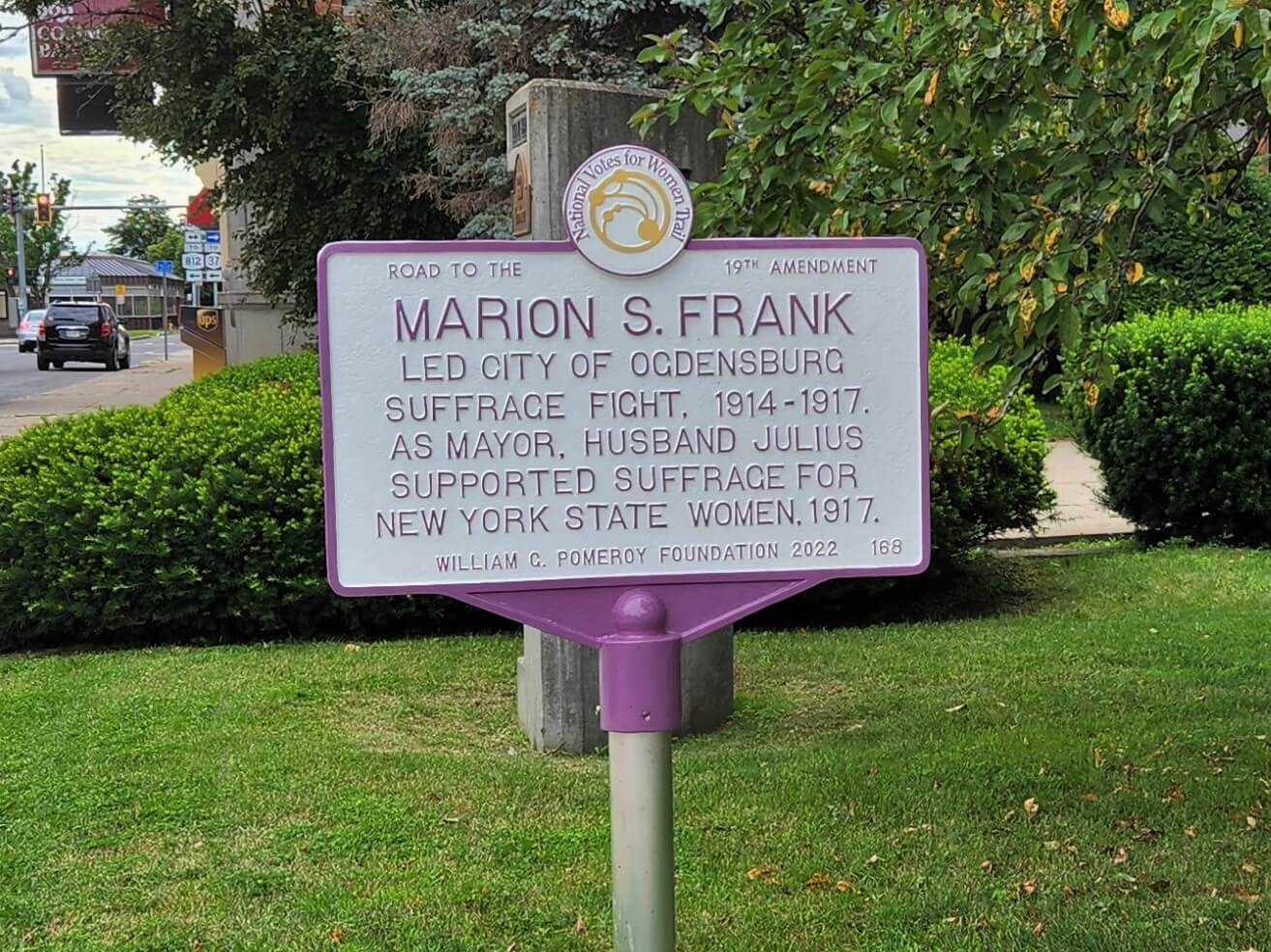 Marion S. Frank led the city of Ogdensburg, New York in the fight for women’s suffrage, most notably throughout the years of 1914-1917. She and her husband, Julius, who served as Mayor of Ogdensburg, supported women’s suffrage and helped galvanize the community behind the women’s suffrage movement.