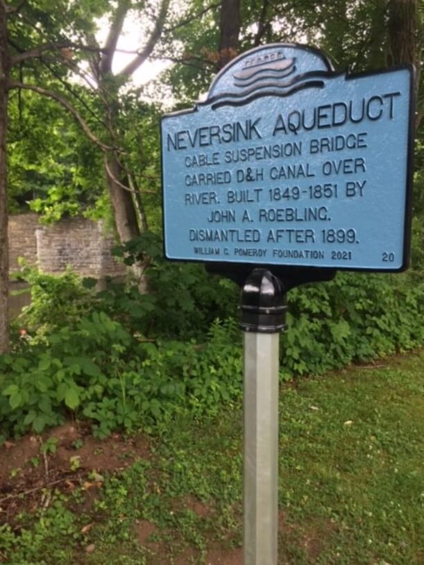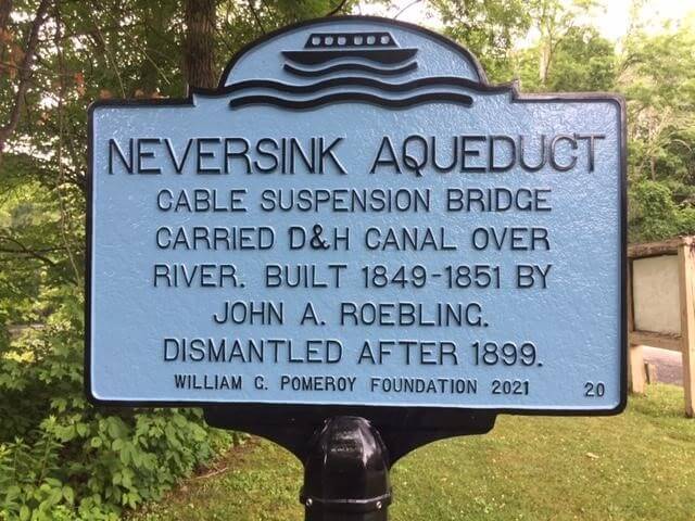 Sources credit Roebling with the development of wire cables, which he used in his designs for the Neversink Aqueduct as well as three other cable suspension aqueducts on the D&H Canal. Roebling later became renowned for his design of the Brooklyn Bridge. By 1899, the D&H Canal was abandoned and the Neversink Aqueduct was dismantled.