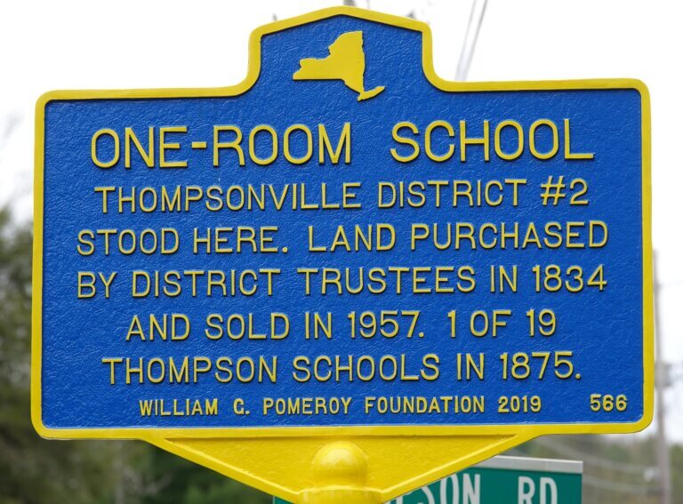 In rural communities, one room school houses were instrumental for the education of children of all ages. District No. 2 Schoolhouse once stood at this site in the hamlet of Thompsonville. The land was purchased by the district trustees and was sold in 1957. This Schoolhouse was 1 of 19 Thompson Schools in 1875.