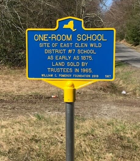 The property for the East Wild Glen schoolhouse was purchased for a nominal one dollar by School District #7 of Thompson, NY in 1878. In 1910, it was reported that an outbreak of scarlet fever had forced the school to close that year. (Republican Watchman, 1910) The property would later be sold to private owners by Central School District #1 of Thompson in 1965, after the school had closed. (Indenture, Sullivan County Clerk’s Office, 1965)