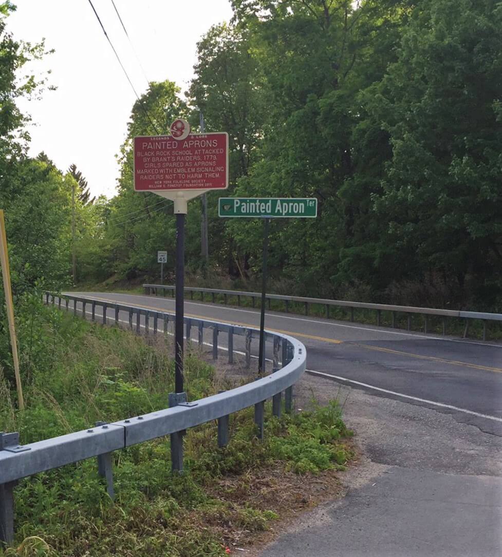 It’s said that in July of 1779, during the Revolutionary War, Joseph Brant and his raiders swept through the Neversink Valley. They arrived at the Black Rock Schoolhouse, killing the teacher, but spared students who wore symbols on their aprons which signaled not to harm them.