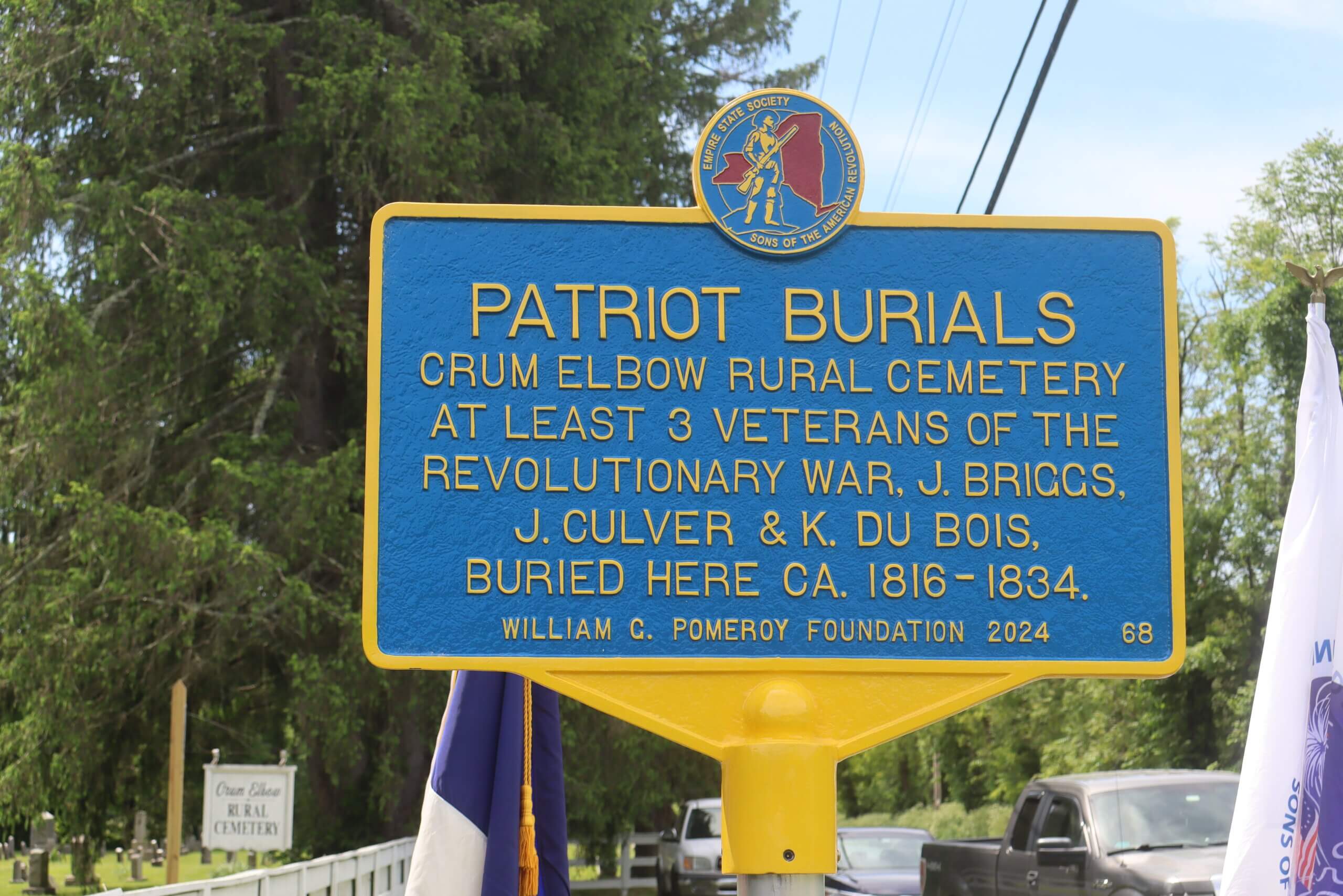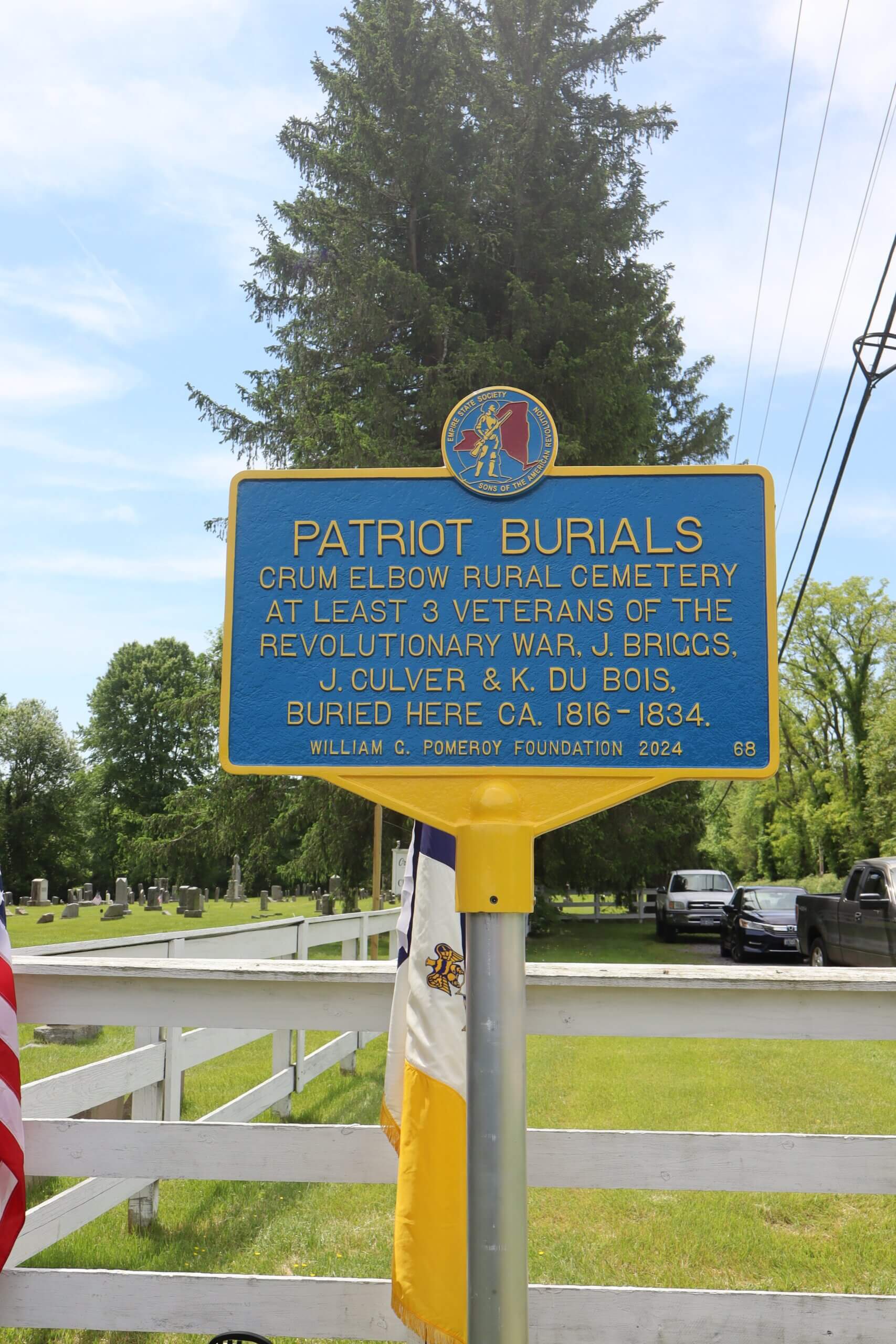 Among those buried in the Crum Elbow Rural Cemetery are at least three veterans of the Revolutionary War: John Briggs, John Culver and Koert Du Bois, all of whom served in various regiments of the Dutchess County militia during the War. In addition, Zophar Frost, another veteran of the War, is believed to be interred in the cemetery as well, though, as of 2023, primary evidence of his burial is yet to be discovered.