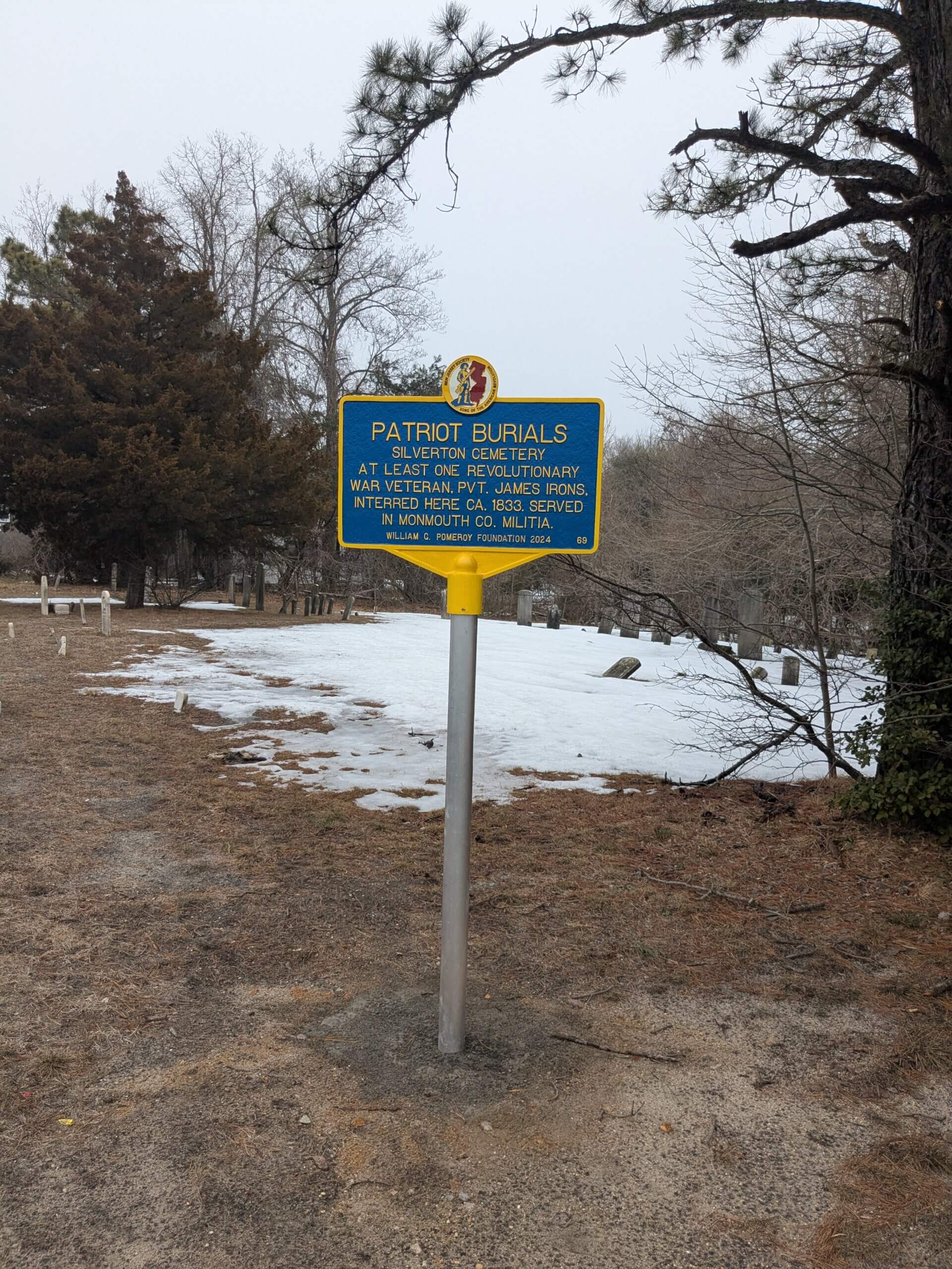 Silverton Cemetery, established in 1815, is the final resting place of many of the community’s early residents. Among those buried here is at least one veteran of the Revolutionary War, James Irons, who served in the Monmouth County Militia during the War and was interred in the cemetery circa 1833.