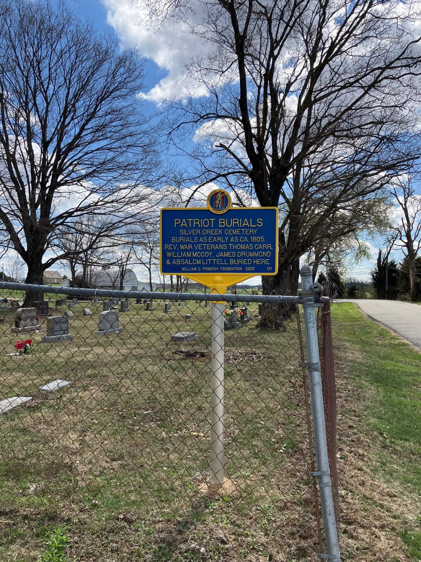 Silver Creek Cemetery is the final resting place for many of the community’s residents, with burials going back as early as ca. 1805. Among those interred here are Revolutionary War veterans Thomas Carr, William McCoy, James Drummond and Absalom Littell.