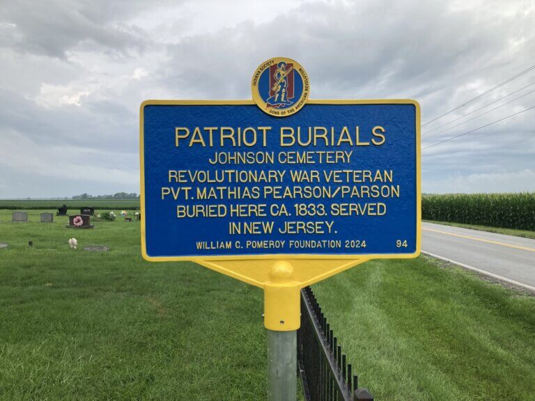 Johnson Cemetery in Stockwell, Indiana, is the final resting place of many of the community’s early residents, including Revolutionary War veteran private Mathias Pearson/Parson, who was interred there in 1833.