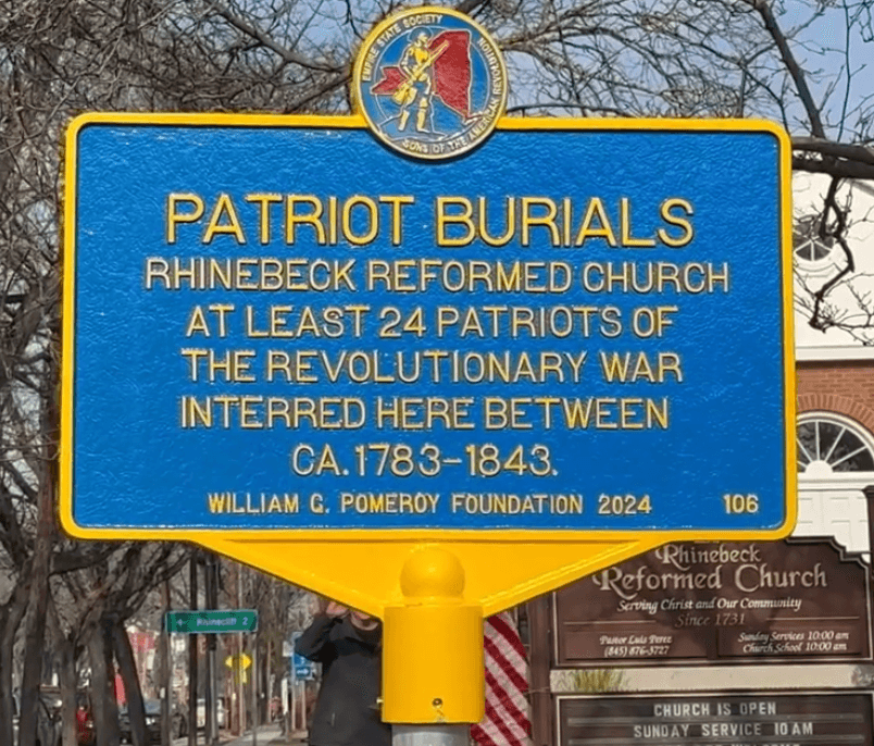 Rhinebeck Reformed Church and adjacent burial ground is the final resting place of the community’s early residents. Among those buried here are at least 24 Revolutionary War Patriots, most of whom served in the local county militia during the War.