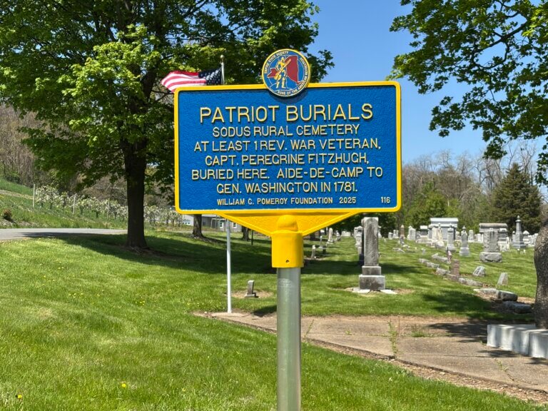 Sodus Rural Cemetery is the final resting place of many of the community’s early residents. Among those buried here is at least one veteran of the Revolutionary War, Captain Peregrine Fitzhugh, who served as an Aide-De-Camp to General George Washington in 1781.