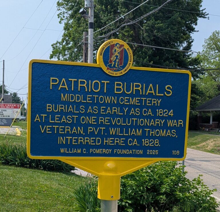 Middletown Cemetery in Vigo County, Indiana is the final resting place of many of the community’s early residents. Among those buried here is at least one Revolutionary War veteran, private William Thomas, who was interred in Middletown Cemetery ca. 1828. In addition to Thomas, another Revolutionary War veteran, James Lee, may be buried there as well; however, as of 2025, definitive primary evidence of Lee’s burial in 1819at the site has yet to be located.