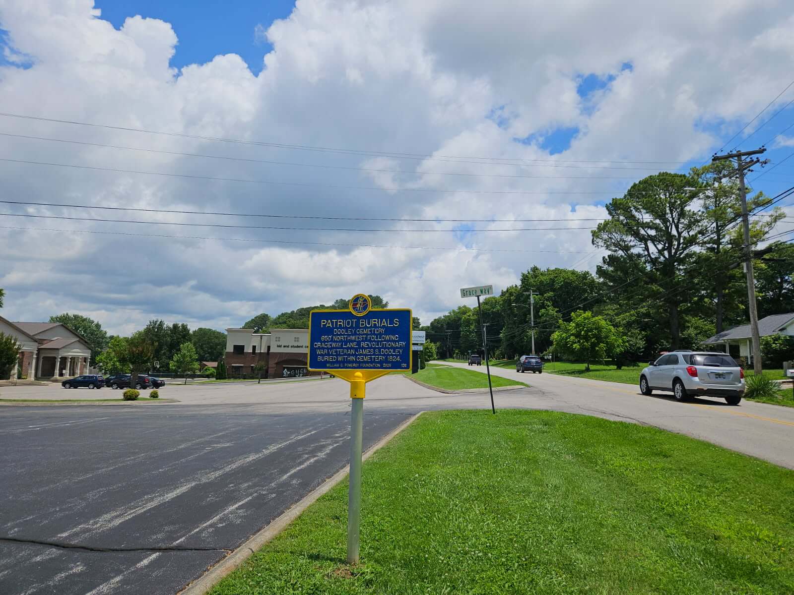 Dooley Cemetery is the final resting place of many members of the Dooley family. Among those buried here is Revolutionary War veteran James S. Dooley, who was interred in 1824. Dooley Cemetery can be accessed by following Graceway Lane and heading 650’ northwest.
