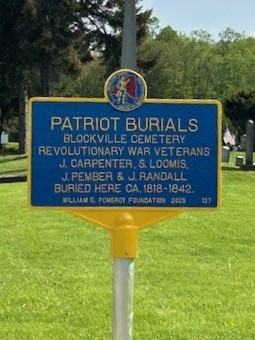 Blockville Cemetery—sometimes referred to as the Blockville Union Burying Ground—is the final resting place of many of the community’s early residents. Among those buried here are four Revolutionary War veterans: Josiah Carpenter, Simon Loomis, John Pember and Jonas Randall.