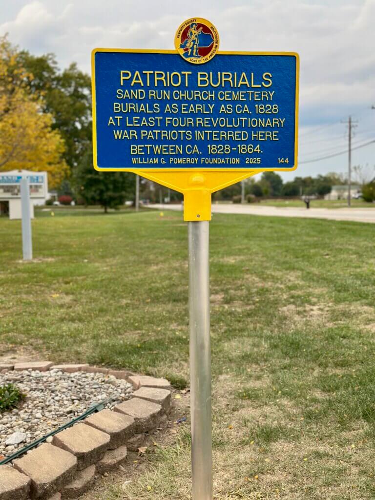 Sand Run (Baptist) Church Cemetery is the final resting place for many of the community’s early residents, with burials as early as ca. 1828. Among those interred here between ca. 1828—1864 are at least four Revolutionary War patriots, including: Chichester Matthews, Thomas Mills, Cave Johnson, and Elizabeth “Betsey” Craig Johnson.