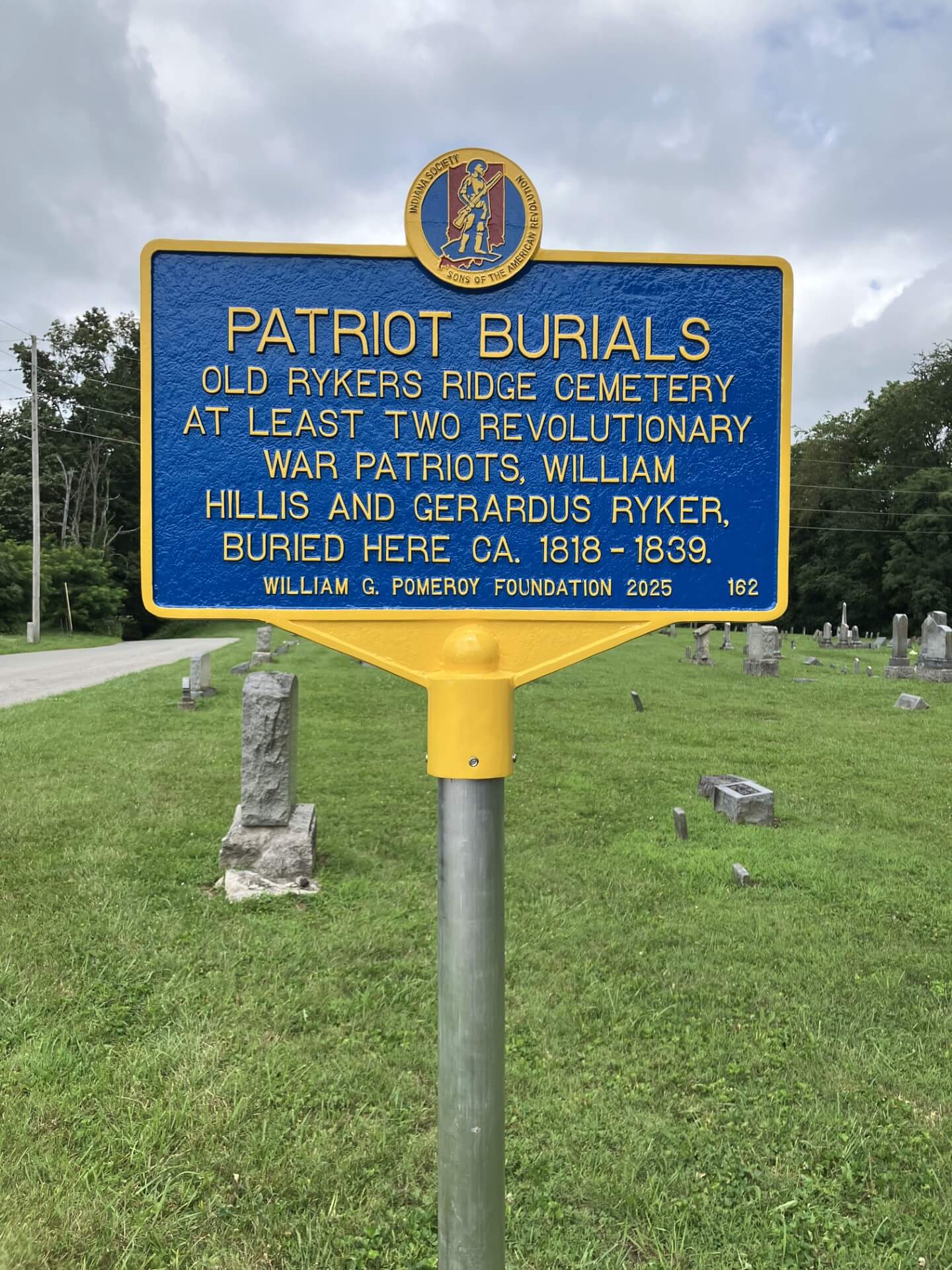 Old Rykers Ride Cemetery is the final resting place of many of the community’s early residents, with burials as early as 1812. Among those interred here between 1818-1839 are least two Revolutionary War veterans, including: William Hillis and Gerardus Ryker.