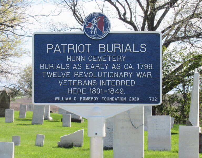 With burials as early as 1799, Hunn Cemetery is the final resting place of the community’s early residents. Among those buried here between 1801-1849 are twelve Revolutionary War veterans.