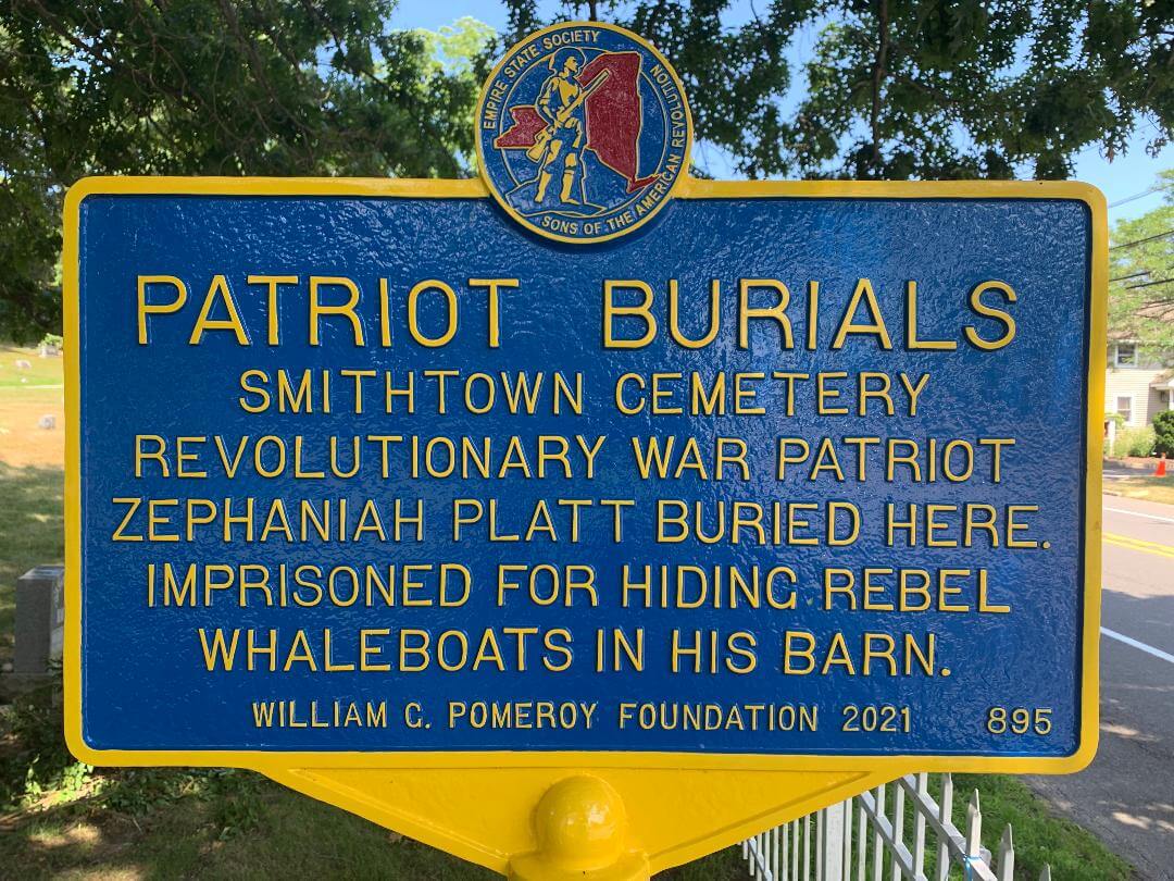 Smithtown Cemetery is the final resting place of many of the community’s early residents. Among those buried here is Revolutionary War patriot Zephaniah Platt, who aided the American Colonies’ cause by hiding rebel whaleboats in his barn.
