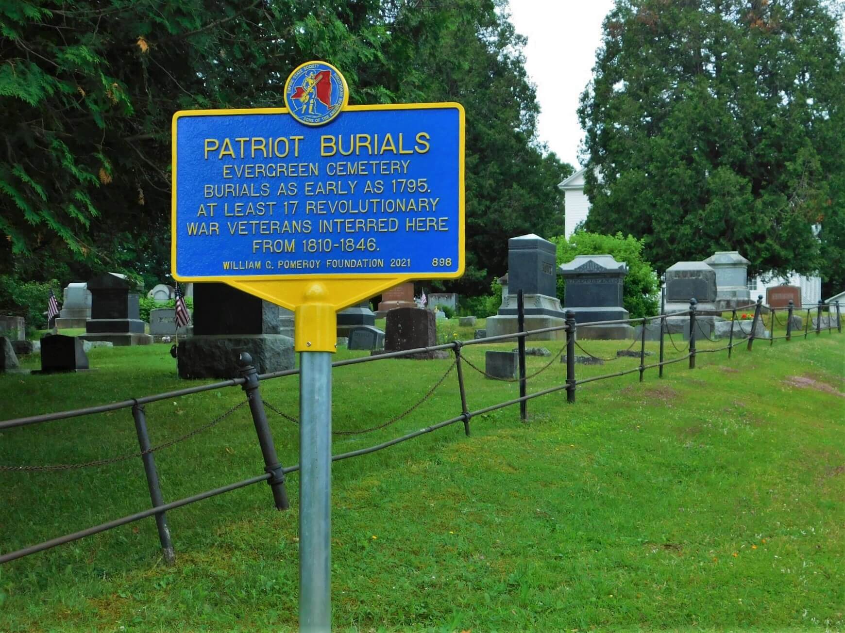 Evergreen Cemetery is the final resting place of the community’s early residents. Among those buried between 1810-1846 are at least seventeen Revolutionary War veterans.