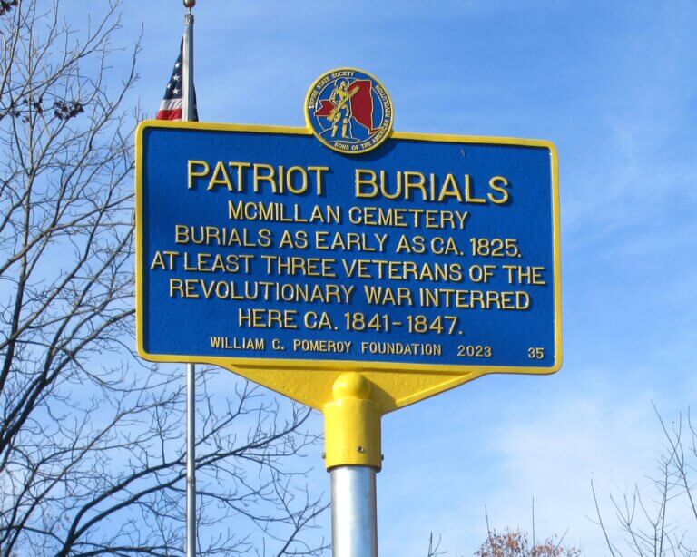 McMillan Cemetery is the final resting place of many of the community’s early residents. Among those buried here between CA. 1841-1847 are at least three Revolutionary War veterans: Francis Horth, Lemuel Richardson and David Soper. In addition, two men, Thaddeus Gage and Joshua Gates, are believed by many to be buried within the cemetery and to have served during the Revolutionary War as well.
