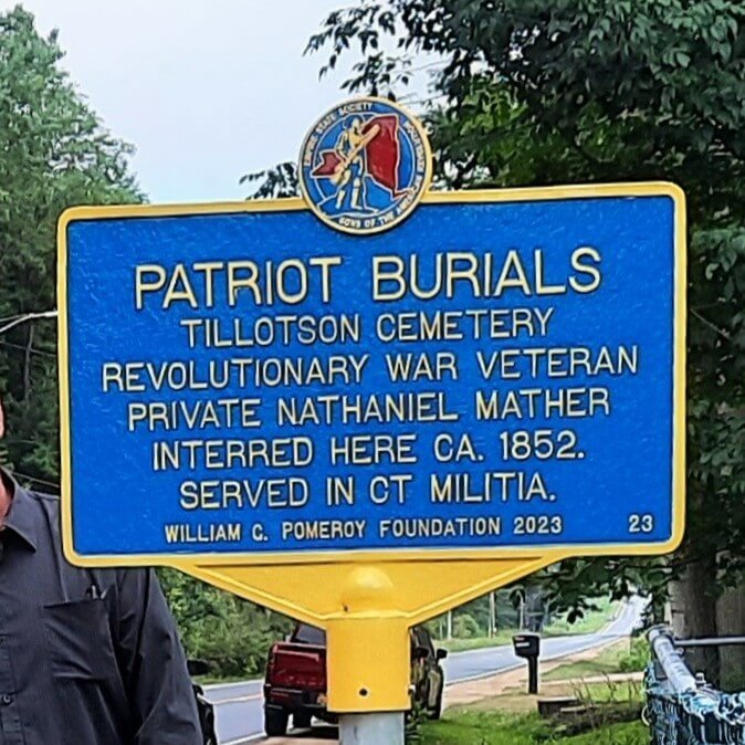 Tillotson Cemetery is the final resting place of the community’s early residents. Among those buried here is Private Nathaniel Mather, who passed away in 1852 at the age of 92. Mather served during the Revolutionary War in the Connecticut Militia before relocating to New York.
