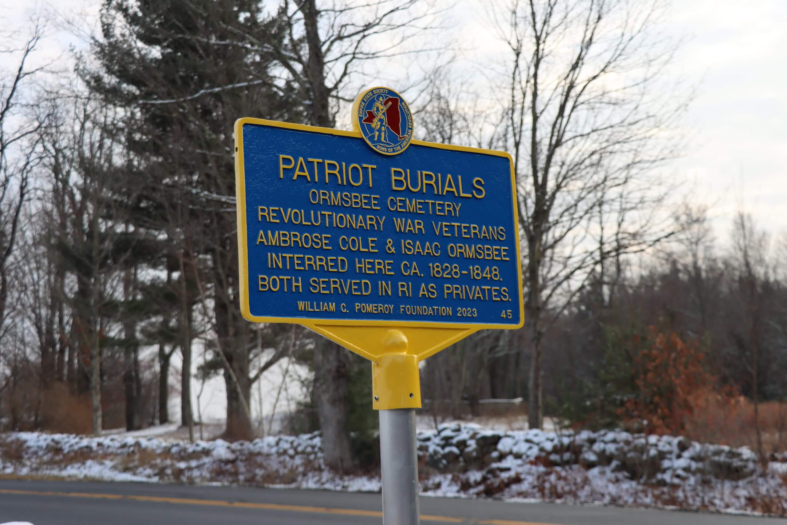 Ormsbee Cemetery is the final resting place of many of the area’s early residents. Among those buried here are Privates Ambrose Cole and Isaac Ormsbee, both of who served during the Revolutionary War while in Rhode Island.