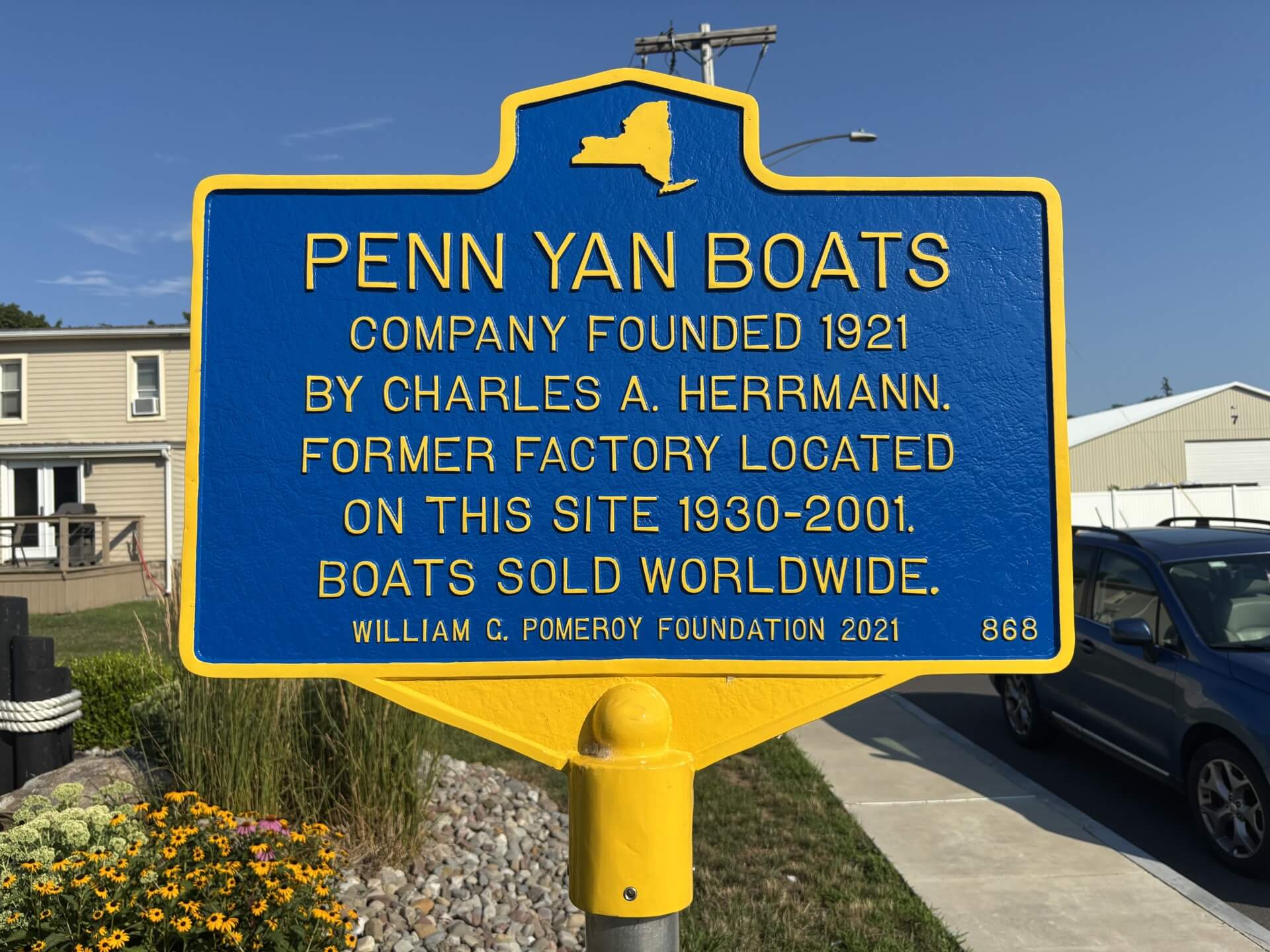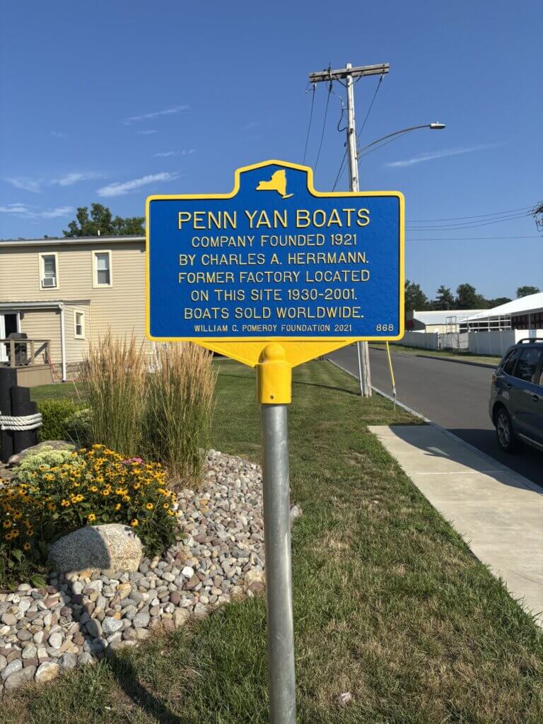In 1921, German immigrant Charles A. Herrmann founded the Penn Yan Boat Company to manufacture boats of all kinds in Penn Yan, NY. The company continued to grow and expand into a prolific boat building enterprise, eventually selling boats worldwide generating millions of dollars in revenue. In 1930, the company opened a new factory on Waddell Avenue in Penn Yan. Boats continued to be manufactured at this location until the closure of Penn Yan Marine Manufacturing in 2001.