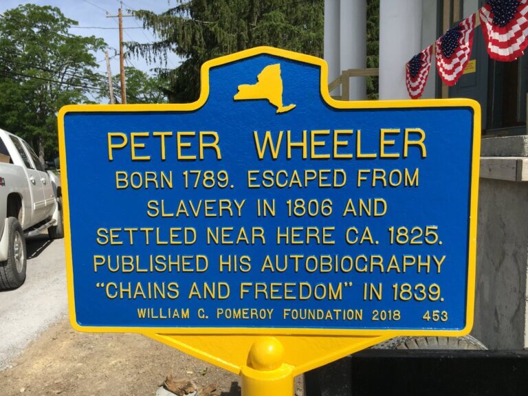 Born in 1789, Peter Wheeler escaped slavery in 1806 and settled near Spencertown around 1825. He went on to publish an autobiography about his experience as an enslaved person entitled Chains and Freedom in 1839.