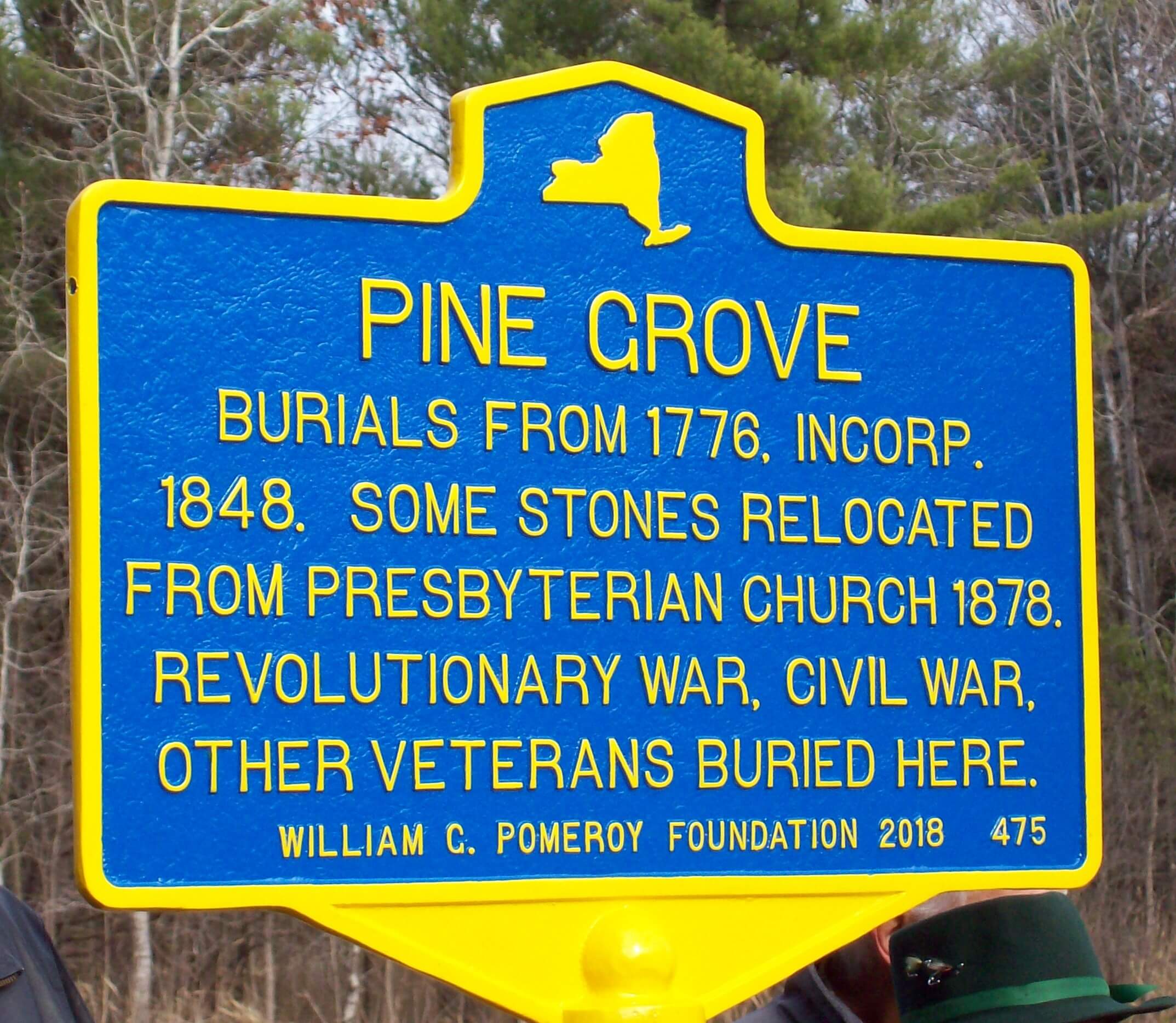 Pine Grove Cemetery is an early burial ground with gravestones dating back to the 1770s. It is the final resting place of veterans, including those from the Revolutionary War and Civil War. The cemetery was incorporated in 1848 and some stones were relocated from the Presbyterian Church in 1878.