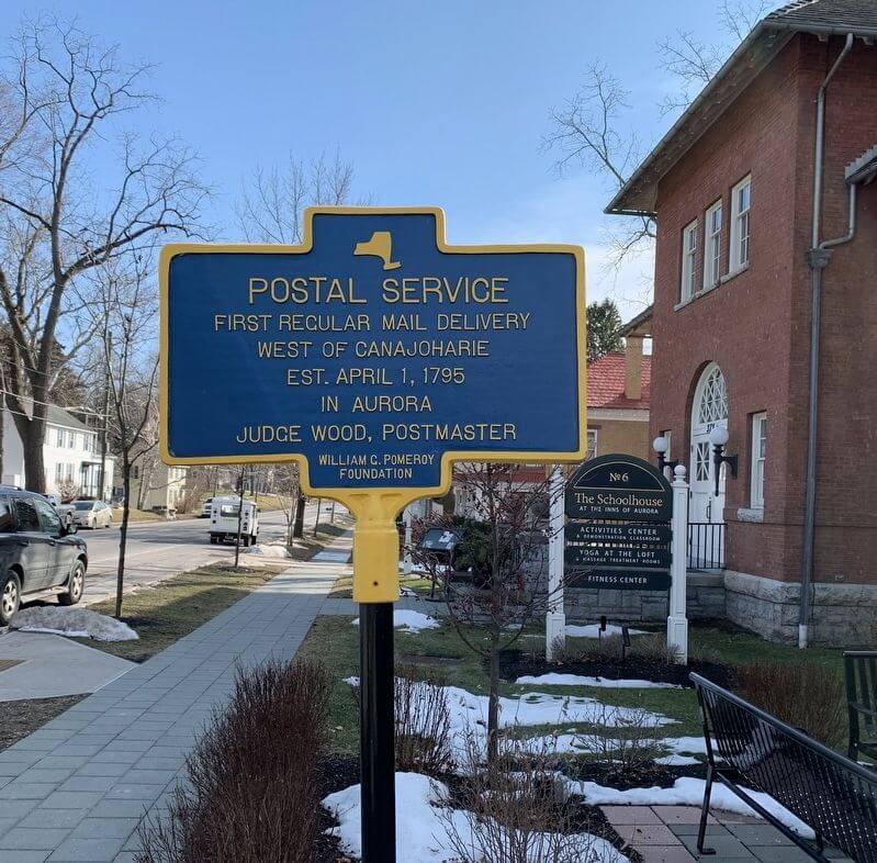Postal service was established in the Village of Scipio (modern day Aurora), on April 1, 1795. Early post offices were typically located in the homes of the postmasters, however the exact location of the first post office in Aurora remains unknown.
