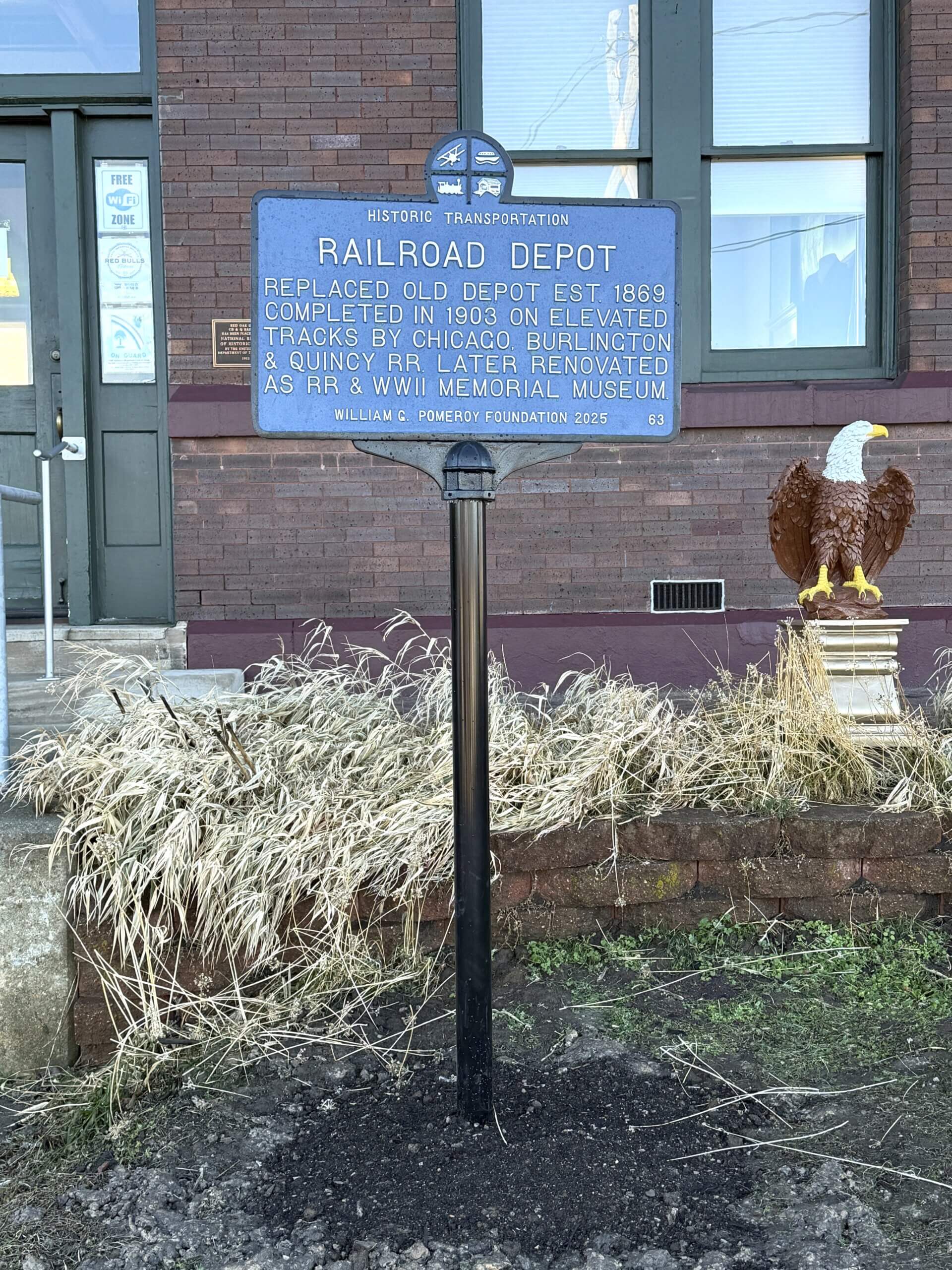RAILROAD DEPOTREPLACED OLD DEPOT EST. 1869.