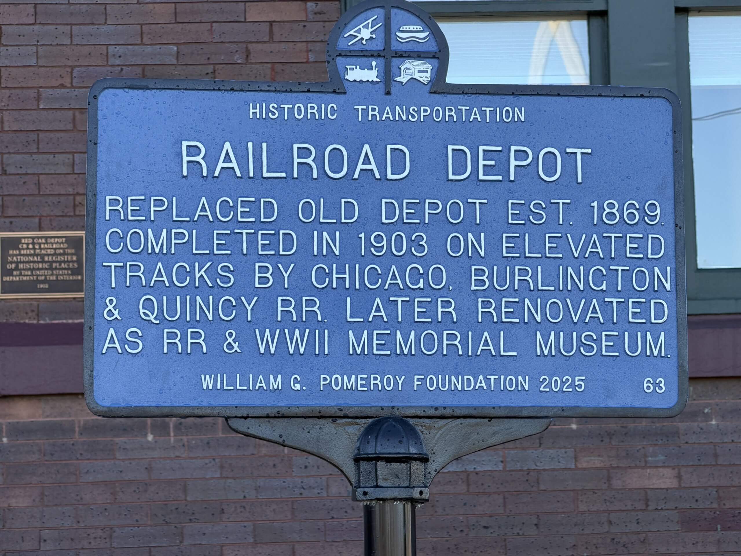 In 1970, the Chicago, Burlington and Quincy Railroad became part of the Burlington Northern Railroad, which later became the BNSF Railway Company. In 1995, the railroad abandoned the former depot in Red Oak and announced plans to demolish the building. In response, the organization Save Our Depot was formed to prevent the loss of the historic structure. The group was successful, and over several years worked to renovate the depot to be used as a museum dedicated to Red Oak’s railroad heritage and honoring veterans of the Second World War.