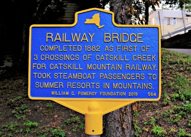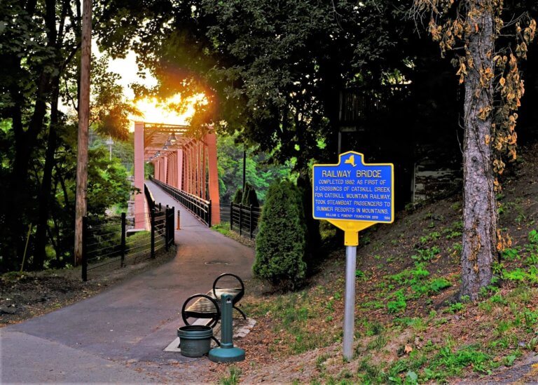 Located only a few hours from the bustling metropolis of New York City, is the small community Catskill, NY. During the 1880s, Catskill was a lively community and attracted visitors who wanted to enjoy the beauty of nature. In 1882, this railway bridge was constructed for the Catskill Mountain Railway. The first of three crossings of the Catskill Creek, the bridge was crucial for transporting passengers to summer resorts located in the Catskill Mountains. Two bridges still stand today, one now serves as a walking path and the other continues to be used for train travel.