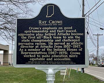 Crowe’s emphasis on good sportsmanship and fast-paced, aggressive play helped Attucks become the first all-Black team to win the state championship and challenged pervasive racism. He served as athletic director at Attucks from 1957-1967. As a member of the Indiana House of Representatives (1967-1975), Crowe worked to make education more equitable and accessible.