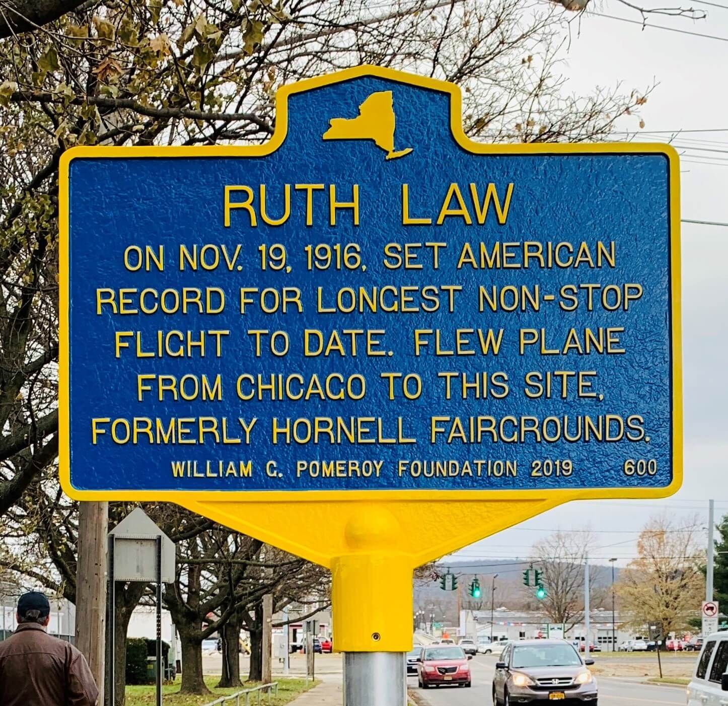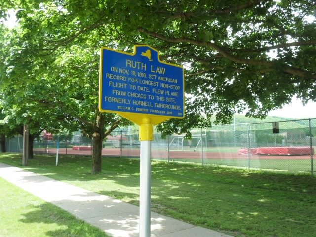 Showing interest in aviation, it was not long before Ruth Law learned how to fly. Not only did she perform impressive aerial stunts at air exhibitions, she was one of the first women to successfully fly and land at night. It was early morning when she departed Chicago, Illinois and successfully landed at Hornell. At the time, she set the American record for longest non-stop flight. Hundreds of local citizens gathered to see the famed aviatrix before she flew to her next destination.