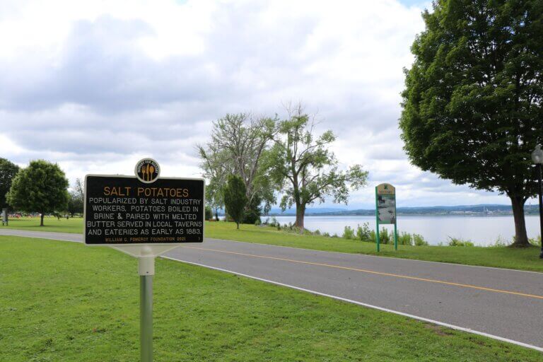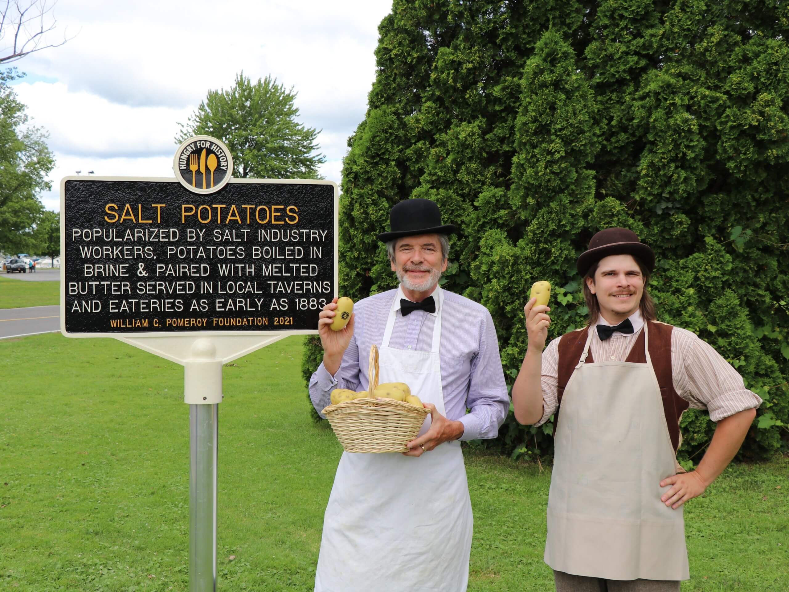Salt potatoes are a result of the once dominant salt industry in the Syracuse area. At its peak in the 1870s, Onondaga County supplied 90% of the nation’s salt. Boiling was the preferred way of separating the salt from the brine. Workers brought potatoes, a food staple of the many Irish immigrants who settled here who worked in the industry. At some point, they began to toss the potatoes into the boiling kettles and produced a dish that would become the region’s calling card. By the 1880s, taverns and saloons on Syracuse’s North Side, where many of the workers congregated at the end of the day, were serving bowls of salt potatoes, topped with melted butter, alongside their pints of beer.