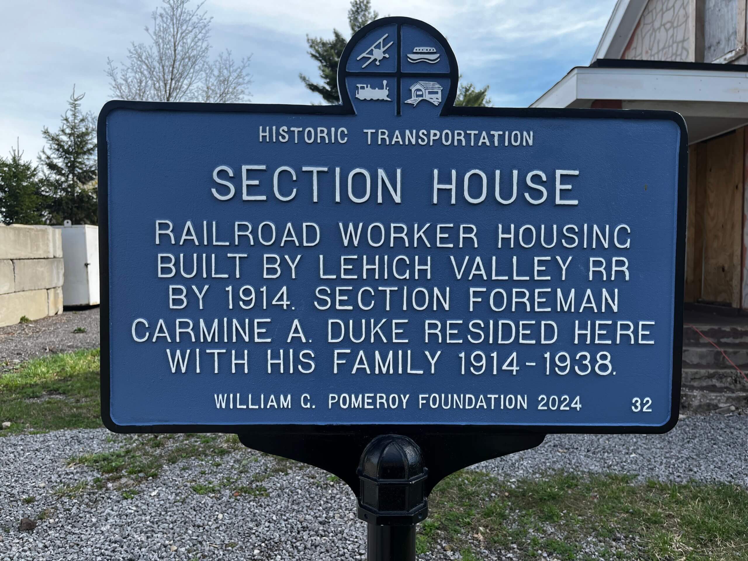 In the village of Williamsville in Erie County, New York, adjacent to the Williamsville Lehigh Valley Depot, stands a section house, a remnant of the former Lehigh Valley Railroad that once ran through the community. The section house was built by the railroad by 1914 and was used to house its workers. From 1914 to 1938, section foreman Carmine A. Duke resided in the house with his family. As the section foreman he oversaw a crew of men that worked to keep the Williamsville section of the Lehigh Valley Railroad in repair, inspecting the tracks daily and overseeing general track maintenance efforts in the area.