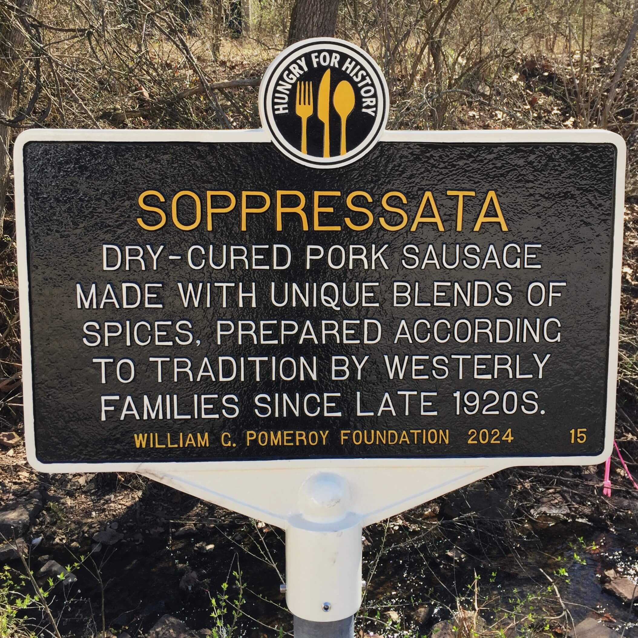 Since the late 1920s, families in the town of Westerly, Rhode Island have made soppressata, affectionately nicknamed “soupy.” A dry-cured pork sausage, soppressata is prepared by Westerly families according to a longstanding tradition inherited from Italian immigrants to the area. In the early 20th century, families immigrating to America from the Calabria region of Southern Italy, brought the soppressata-making tradition with them to Westerly. Each family developed and maintained their own unique blends of spices used to make their soppressata, and the tradition continues into the present day.