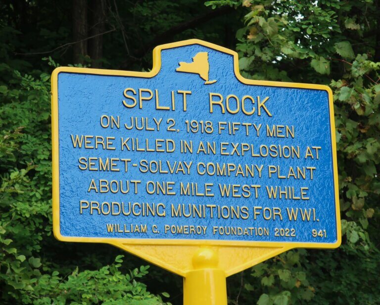 The Semet-Solvay company had provided the coroner with the names of those still missing, which aligned with the fifteen unidentified bodies at the morgue. The tragedy at Split Rock occurred roughly five months before the armistice ending World War I was signed, after which the Split Rock plant closed. This marker, located approximately a mile west of the site of the tragedy, commemorates both the night of the accident and the fifty men who lost their lives in the explosion.
