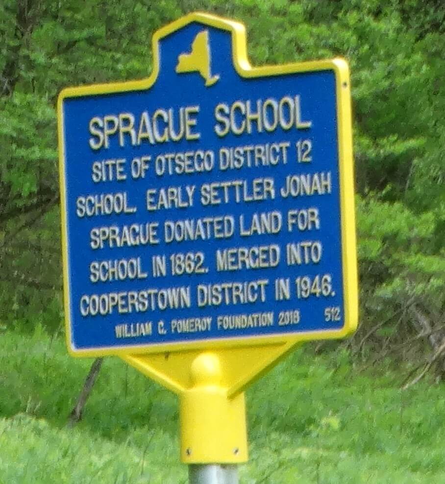 One of the first schoolhouses in Otsego County stood nearby, in the hamlet of Fly Creek, outside Cooperstown, NY. Built on land donated by the Sprague family, it was known as District No. 12 School. The school later merged with the Cooperstown District in 1946.