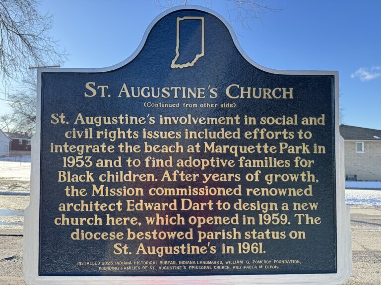 Installed 2025 Indiana Historical Bureau, Indiana Landmarks, Inc., William G. Pomeroy Foundation, Founding Families of St. Augustine’s Episcopal Church, and Paula M. DeBois