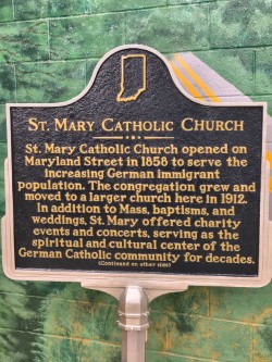 St. Mary Catholic Church opened on Maryland Street in 1858 to serve the increasing German immigrant population. The congregation grew and moved to a larger church here in 1912. In addition to Mass, baptisms, and Weddings, St. Mary offered charity events and concerts, serving as the spiritual and cultural center of the German Catholic community for decades.